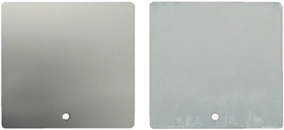 圖二:涂層厚度為11μm的測試板:沒有經過鹽霧腐蝕測試(左圖)和根據(jù)DIN EN ISO 9227-NSS鹽霧試驗2500小時后(右圖)。右圖測試板沒有腐蝕現(xiàn)象