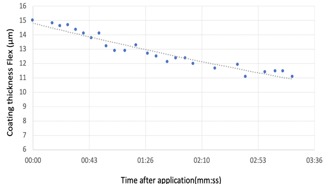 圖七:使用coatmaster Flex測量鋅片固化前底漆的涂層厚度的時間函數(shù)