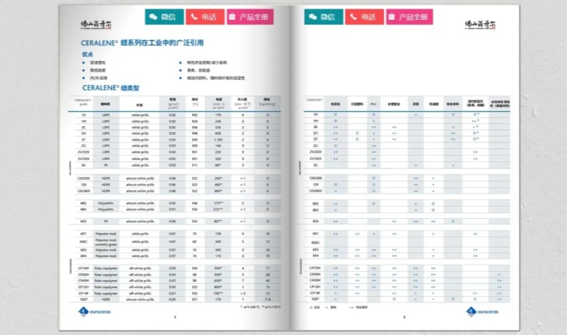 Euroceras 是一家生產(chǎn)廣泛合成蠟的制造商,品牌名為 CERALENE®。Euroceras 擁有超過 45 年的聚乙烯蠟生產(chǎn)經(jīng)驗。該公司擁有生產(chǎn)非極性 LDPE、HDPE、PP蠟以及極性共聚物蠟和獨特聚酯蠟的反應器。CERALENE® 蠟在塑料中的主要應用領(lǐng)域包括顏料和添加劑母料的分散、PVC加工中的外部和內(nèi)部潤滑,以及在技術(shù)塑料和纖維填充復合材料中的流動改進。